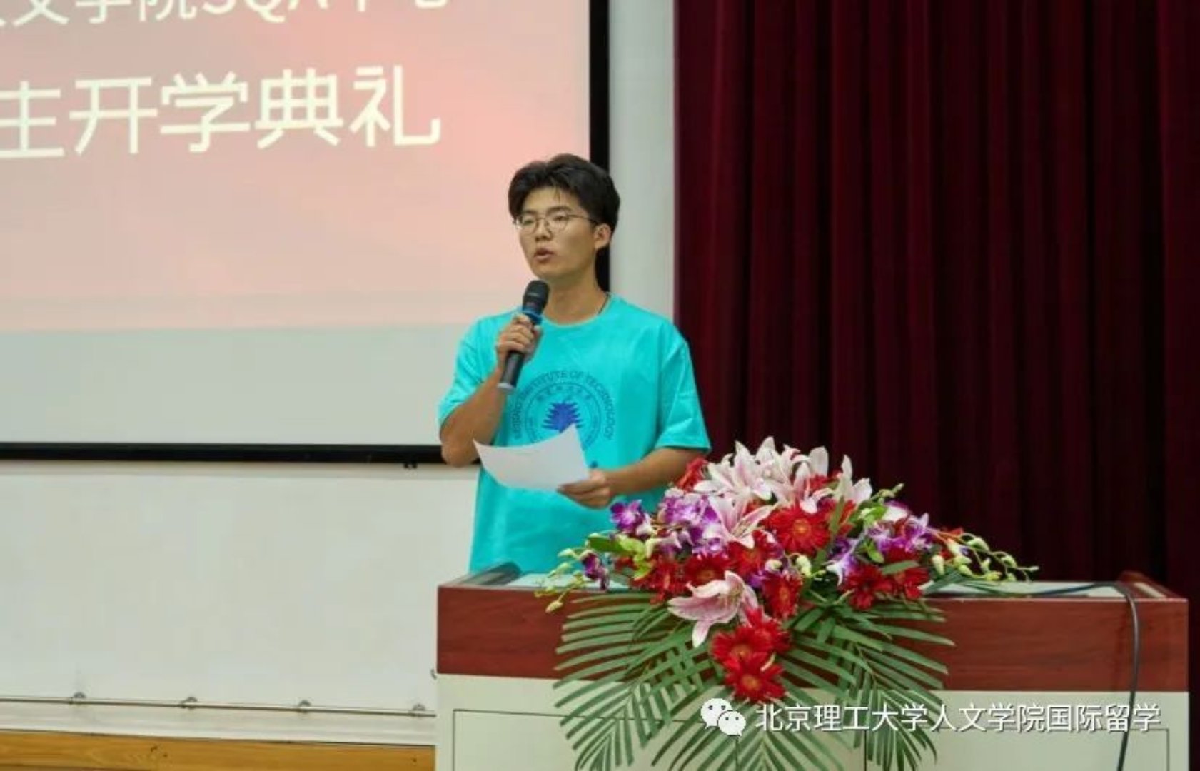 2021级学生李博作为老生代表发言,欢迎学弟学妹们到来。同时,从自身的经历出发,分享了在北理生活学习的经验与体会。