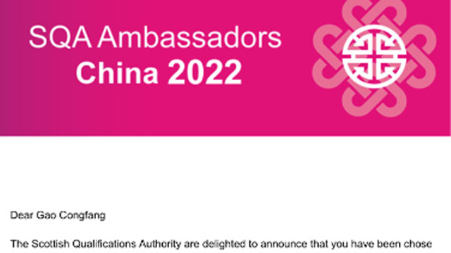 2019级高丛芳同学荣获“2022年全国SQA理想大使”称号